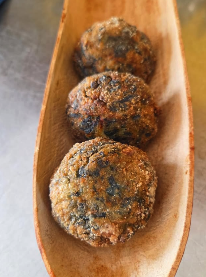 Masa de maíz originaria de Italia, con calabaza, cebolla y zanahoria. Rellena de pesto y tomate seco.