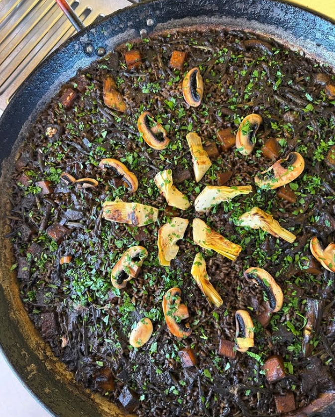 Calabaza ecológica de la finca Canpuvil rellena de verduritas y setas.